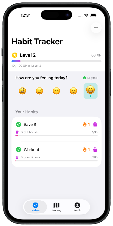 A streamlined habit tracker designed to help you navigate your daily goals with clarity and ease. Level up your consistency, unlock achievements, and turn your progress into a game.